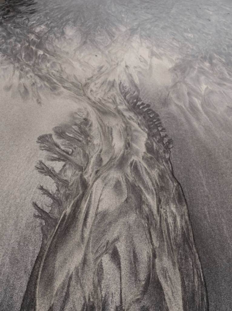 J’ai été sensible au regard photographique que Michel Leclercq, un ami sculpteur et compagnon de randonnée, porte sur la nature, cadrant la beauté terre à terre, sans chercher à l’idéaliser. Je lui ai demandé ses photos de plages et de sables : elles me parlaient. J’en ai choisi quelques unes, j’ai suivi le parcours qu’elles semblaient m’ouvrir d’elles-mêmes, les accompagnant de mots en écho à tous ces façonnages de la mer et du vent.